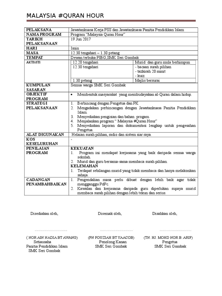 Semua Program Acara di World Quran Hour. Download to read offline. Dalam laporan ini kami mengacu kepada tujuan pendidikan nasional khususnya pembangunan manusia seutuhnya yang religius sehingga tidak ada waktu yang terbuang sia.